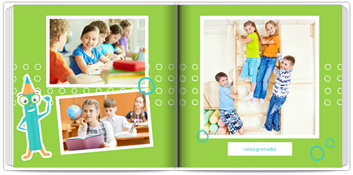 Wyjątkowej urody szablon szkolnej fotoksiążki. Doskonały sposób na dokumentację chwil, gdy Wasze dzieci po raz pierwszy przekraczają szkolne progi. Pamiętajcie, że można bawić się wspólnie – z całą klasą. To łatwe - zdjęcia w szablonie, podpisy i ramki – gotowe fotoksiążki ucieszą każdego – i rodziców i dzieci.